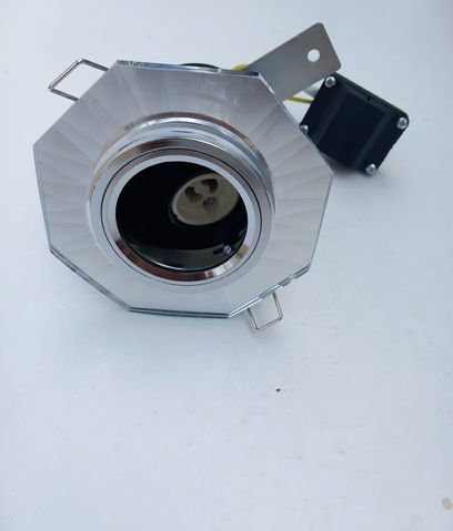 FIRE RATED HEXAGONAL GLASS BEZEL GU10(LAMP NOT INCLUDED,LOW ENERGY LED COMPATIBLE.CHROME FINISH.CORDED POWER SUPPLY,COMES WITH CONNECTION BLOCK